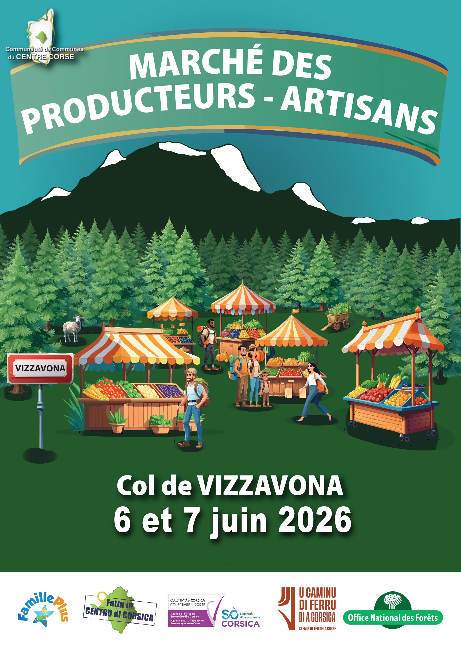 La Communauté des Communes du Centre Corse vous invite à découvrir les saveurs et le savoir-faire de toute la Corse lors du marché des producteurs de Vizzavona. Nos producteurs se feront un plaisir de vous accueillir. Le premier samedi du mois de juin, plus de 60 exposants vont vous faire découvrir l’artisanat corses et vous permettre de déguster des produits issus de traditions culinaires de la région. Laissez-vous guider vers une expérience culinaire et culturelle incomparable. Venez vivre l’authenticité de la Corse ! Contactez Mme Laura Santoni à la Communauté de Commmunes du Centre Corse.