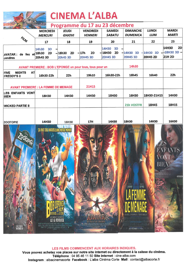 CINEMA L ALBA : PROGRAMME DU 17 AU 23 DECEMBRE 2025