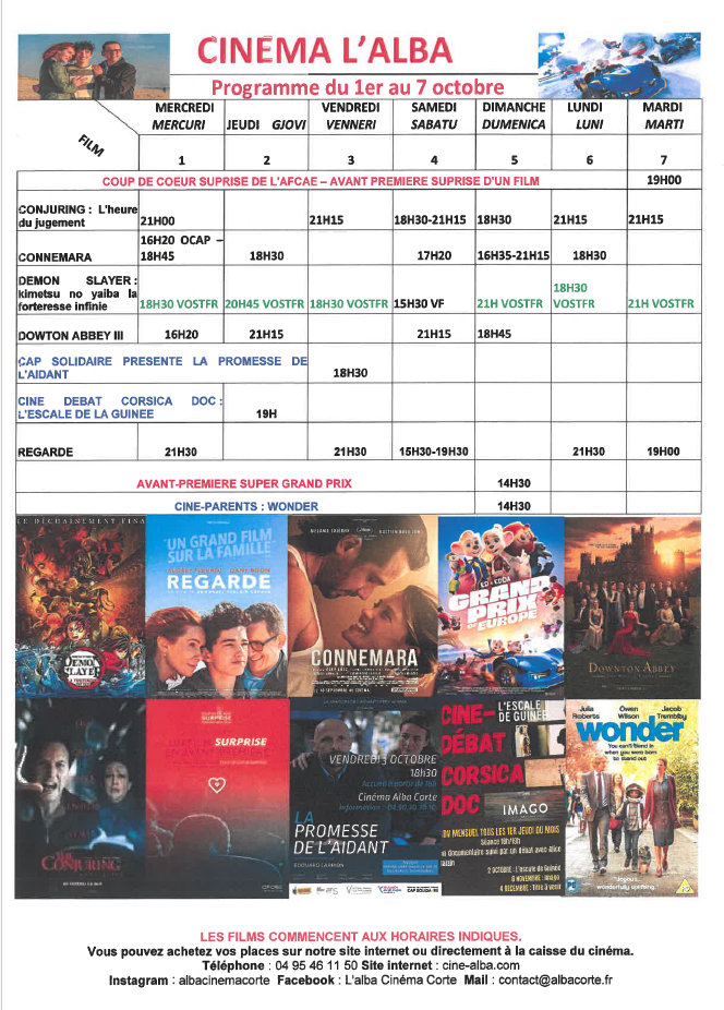 CINEMA L ALBA : PROGRAMME DU 1er AU 7 OCTOBRE 2025