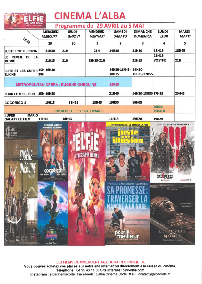 CINEMA L ALBA : PROGRAMME DU 29 AVRIL AU 5 MAI 2026