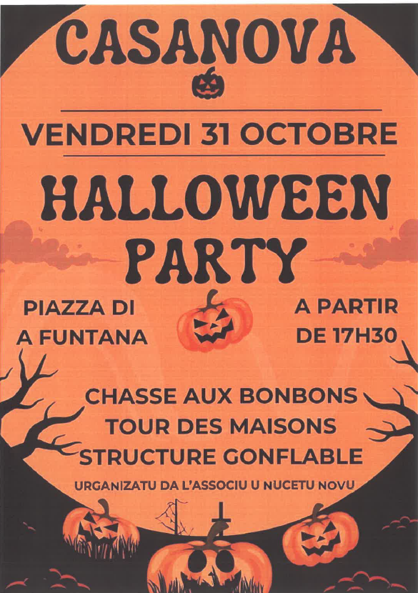 Halloween Party , Piazza di A Funtana ab 17:30 Uhr, Süßigkeitenjagd, Häusertour, Hüpfburg, organizatu da l'associu u Nucetu Novu.