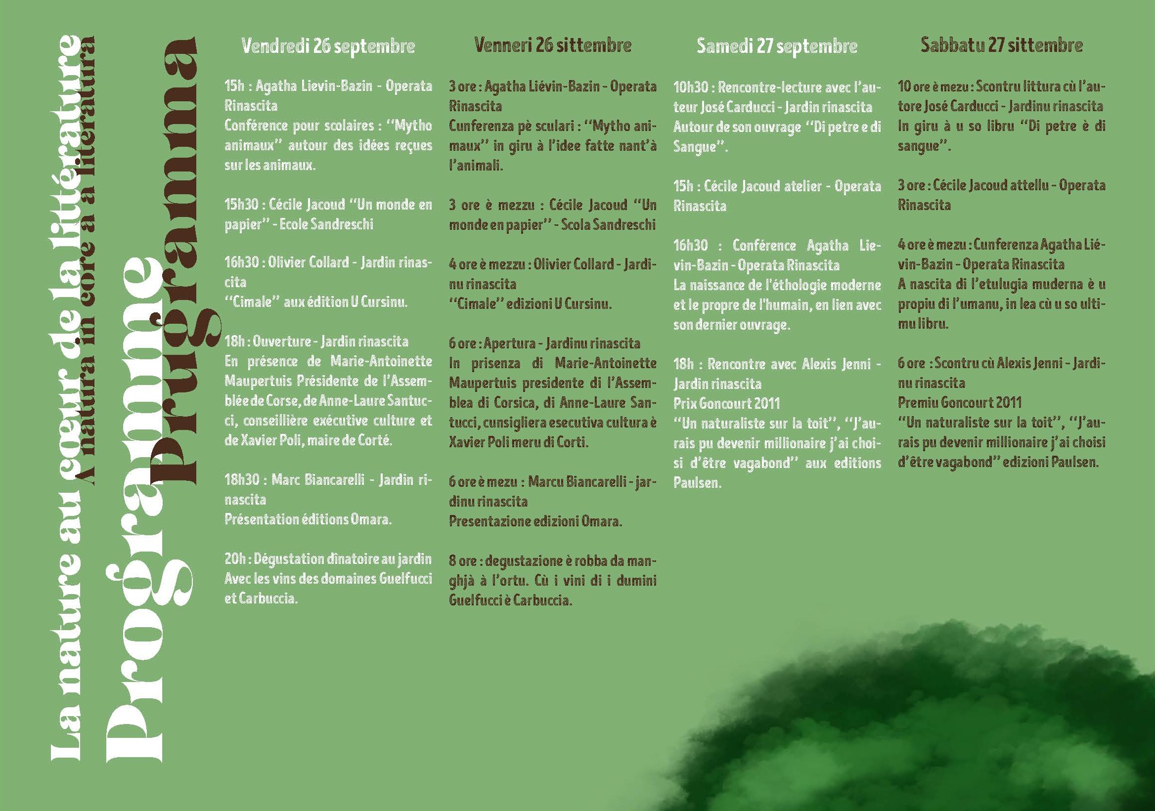 "Lire entre les vignes" (Lesen zwischen den Weinbergen) verbindet Literatur und Önologie. Die kulturelle Veranstaltung findet zum ersten Mal in Corte statt, im Garten und im soziokulturellen Bereich des CPIE A Rinascita.