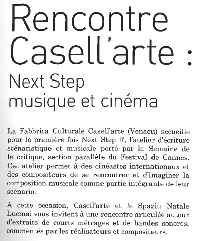 RENCONTRE CASELL'ARTE : NEXT STEP MUSIQUE ET CINEMA