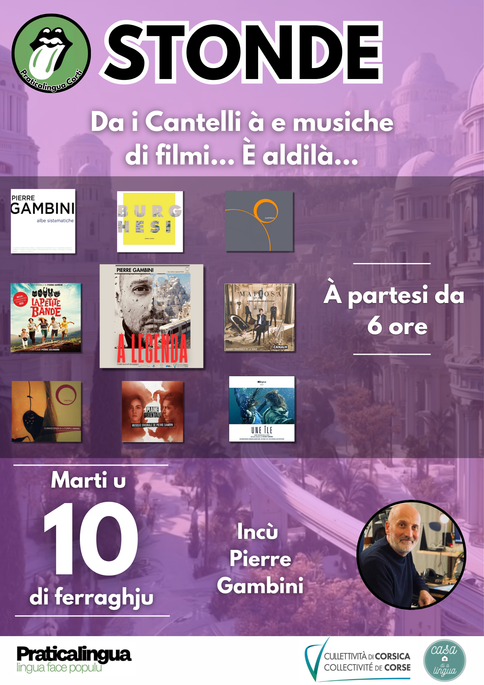 Pratica Lingua: Stonde "Da i Cantelli à e musiche di filmi... E aldilà..." Incu Pierre Gambini. Chjamatelu Houdini! Praticalingua Corti hà u piacè tamantu di riceve, marti u 10 di ferraghju, l'amicu Pierre Gambini, chì venerà à parlacci di u so parcorsu. Fundatore di i mitichi Cantelli, cumpusitore di musiche di serie è di filmi, volta oghje cù un prugettu novu: "A Legenda", una fola musicale distopica. Affaccatevi numerosi da sparte sta stonda cù noi!