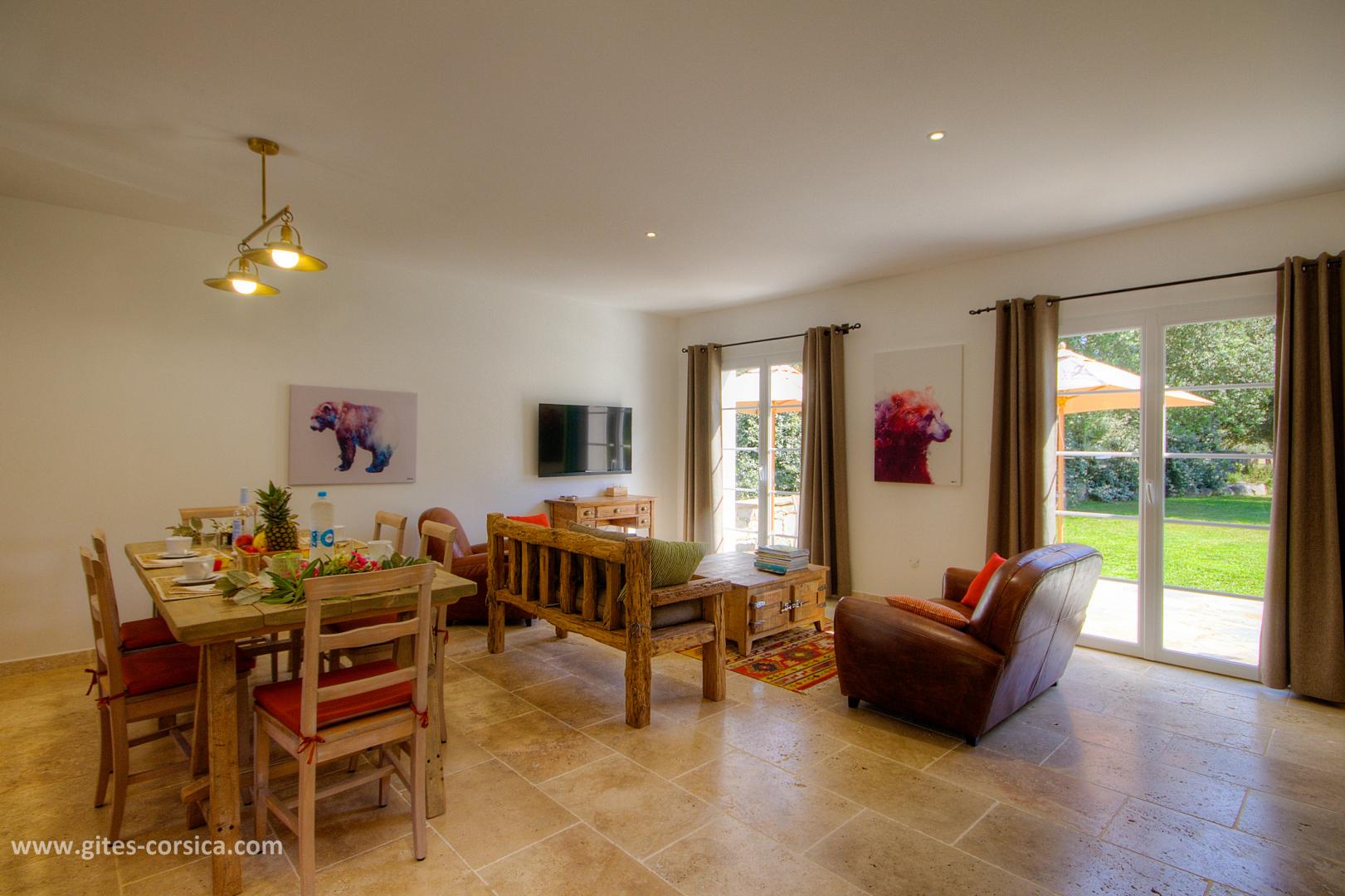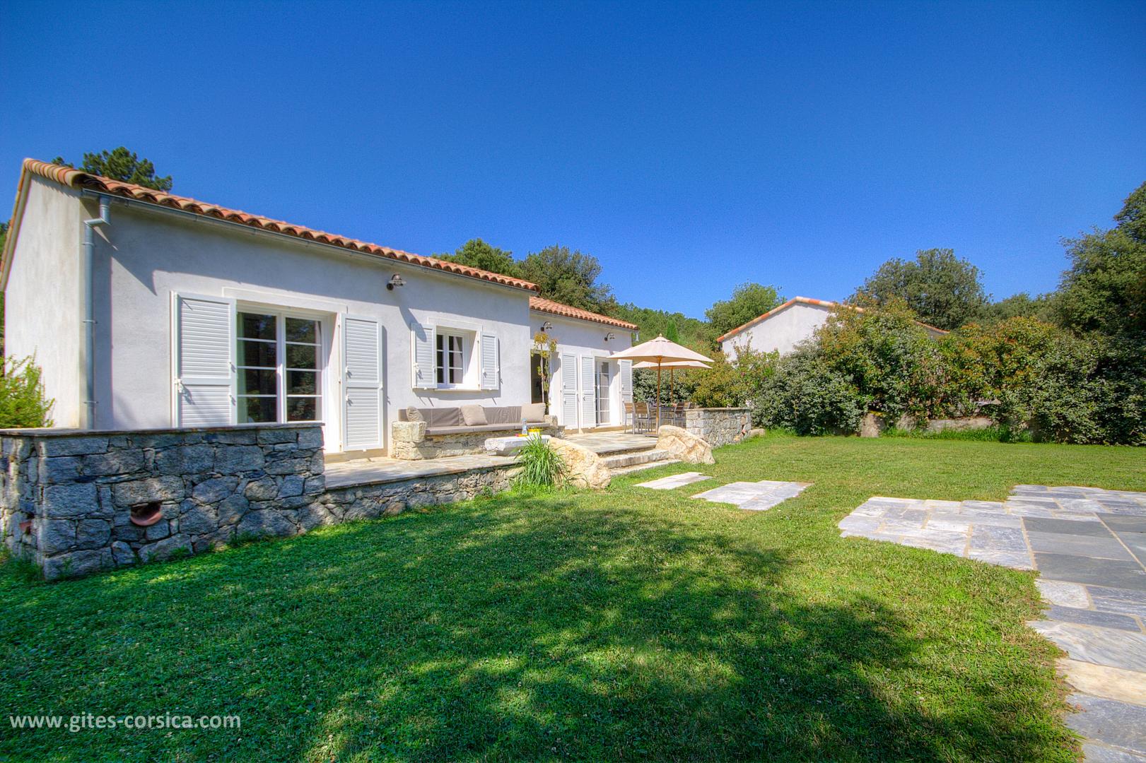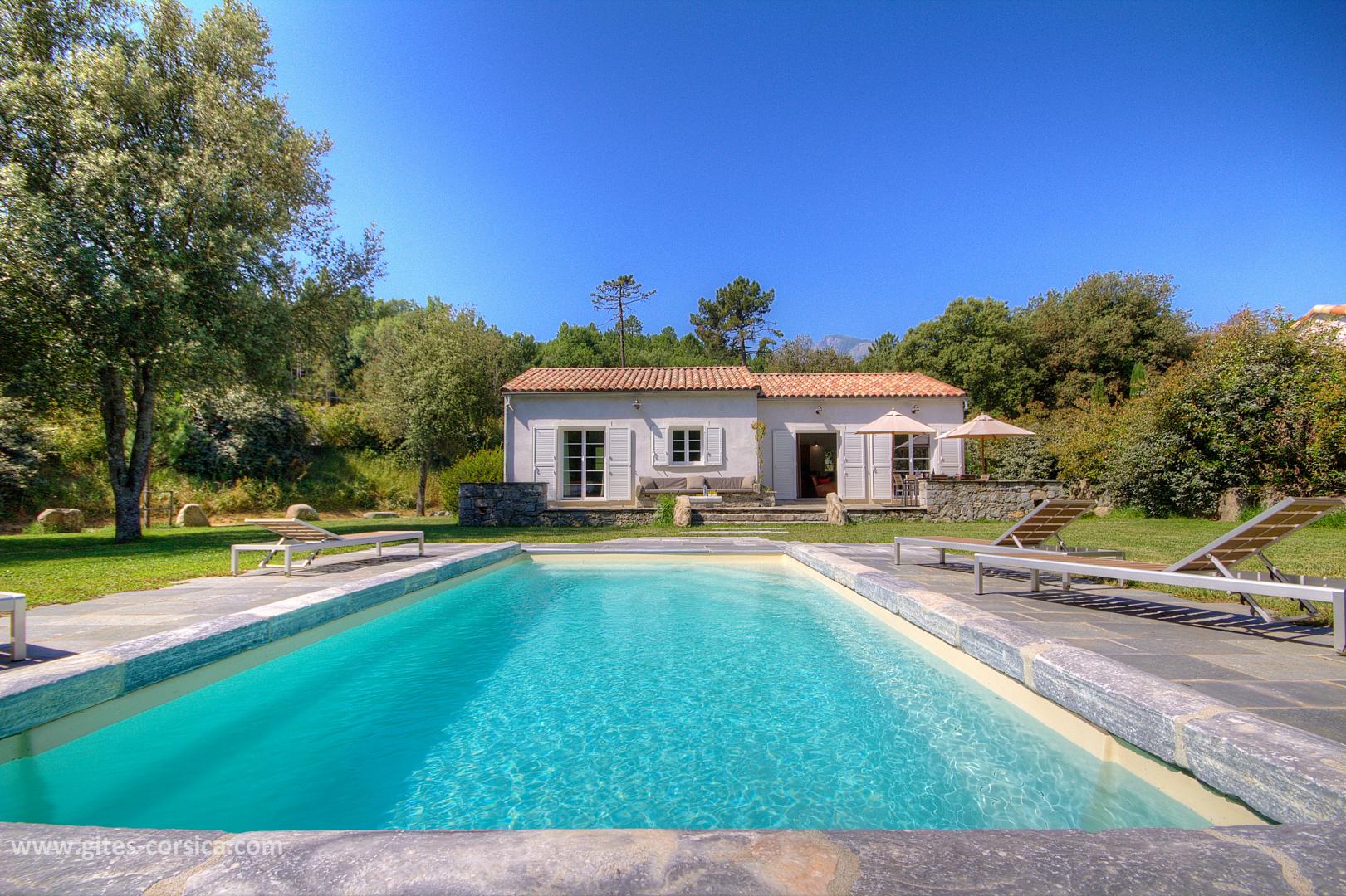 On a wooded property of 20 hectares, independent house of 86 m² near the owners' house and another gite. It is composed as follows: - Living room/kitchen - 2 bedrooms each with 2 90x200 cm beds that can be combined into a 180x200 cm bed - 2 shower rooms/WC with walk-in shower, one of which adjoins one of the bedrooms Direct access to the river, bordering the property Below the territorial road linking Corte to Aleria - Private and heated 7x4 m swimming pool from May 2 to May 31 and from September 15 to September 30, secured by a protective cover - Terrace - Garden furniture with parasol - Relaxation furniture - 4 sunbeds - Barbecue - Car park in the property (gate with access beep) - Air conditioning - Washer dryer - Dishwasher - Microwave - Freezer compartment - Capsule filter coffee maker - Television in the living room/kitchen and in each bedroom - Wireless - Towel dryer - Hair dryer - Beds made on arrival