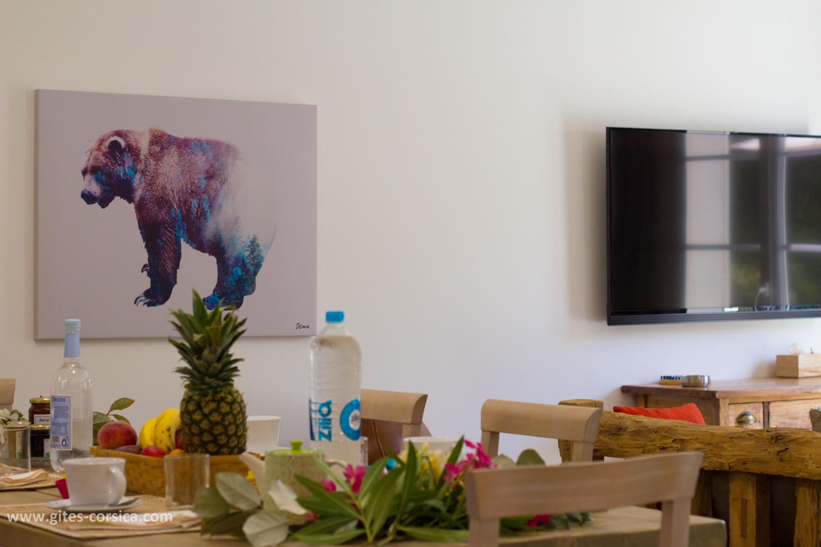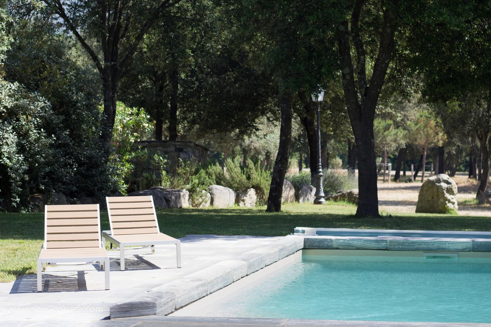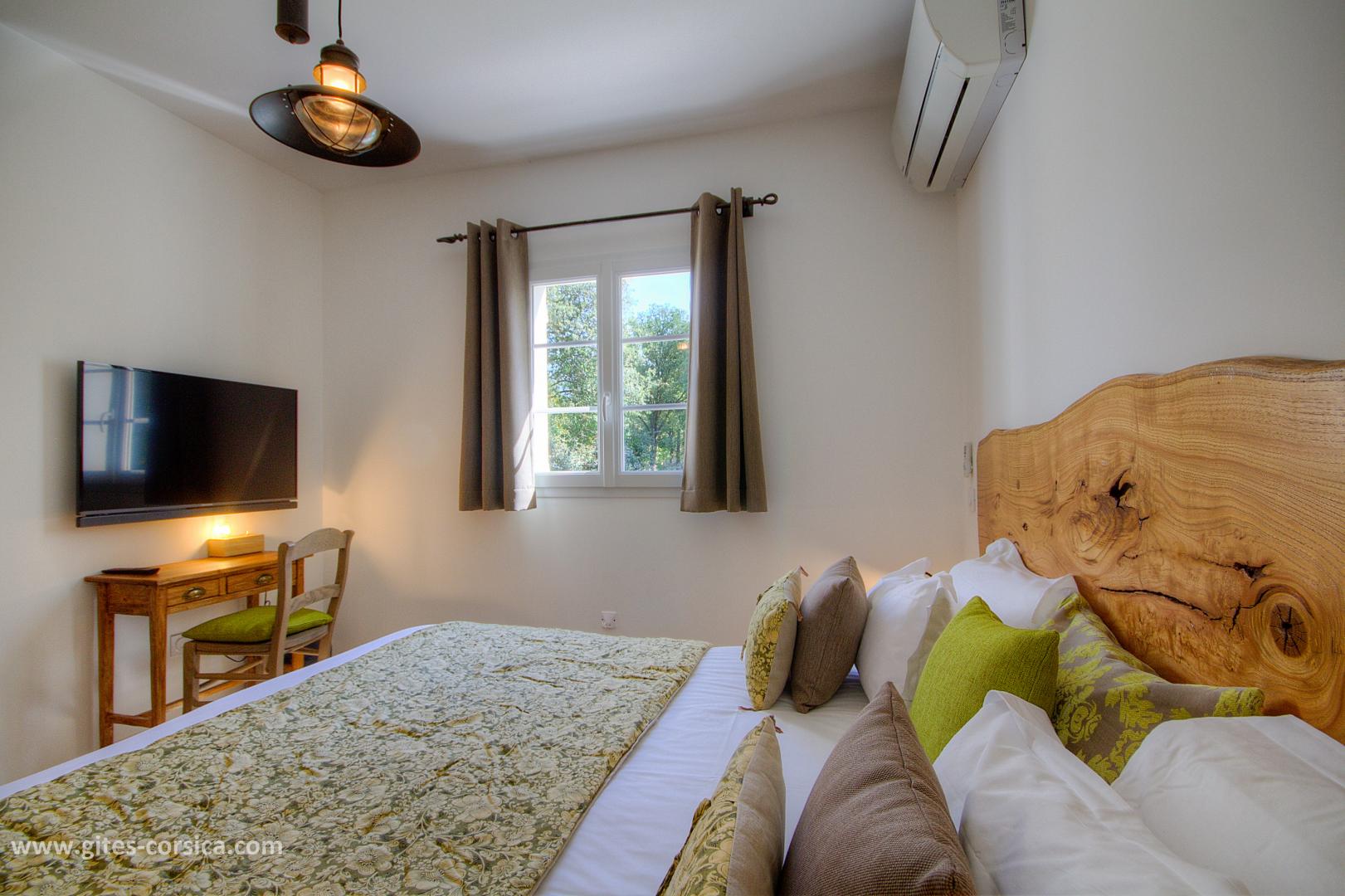 On a wooded property of 20 hectares, independent house of 86 m² near the owners' house and another gite. It is composed as follows: - Living room/kitchen - 2 bedrooms each with 2 90x200 cm beds that can be combined into a 180x200 cm bed - 2 shower rooms/WC with walk-in shower, one of which adjoins one of the bedrooms Direct access to the river, bordering the property Below the territorial road linking Corte to Aleria - Private and heated 7x4 m swimming pool from May 2 to May 31 and from September 15 to September 30, secured by a protective cover - Terrace - Garden furniture with parasol - Relaxation furniture - 4 sunbeds - Barbecue - Car park in the property (gate with access beep) - Air conditioning - Washer dryer - Dishwasher - Microwave - Freezer compartment - Capsule filter coffee maker - Television in the living room/kitchen and in each bedroom - Wireless - Towel dryer - Hair dryer - Beds made on arrival