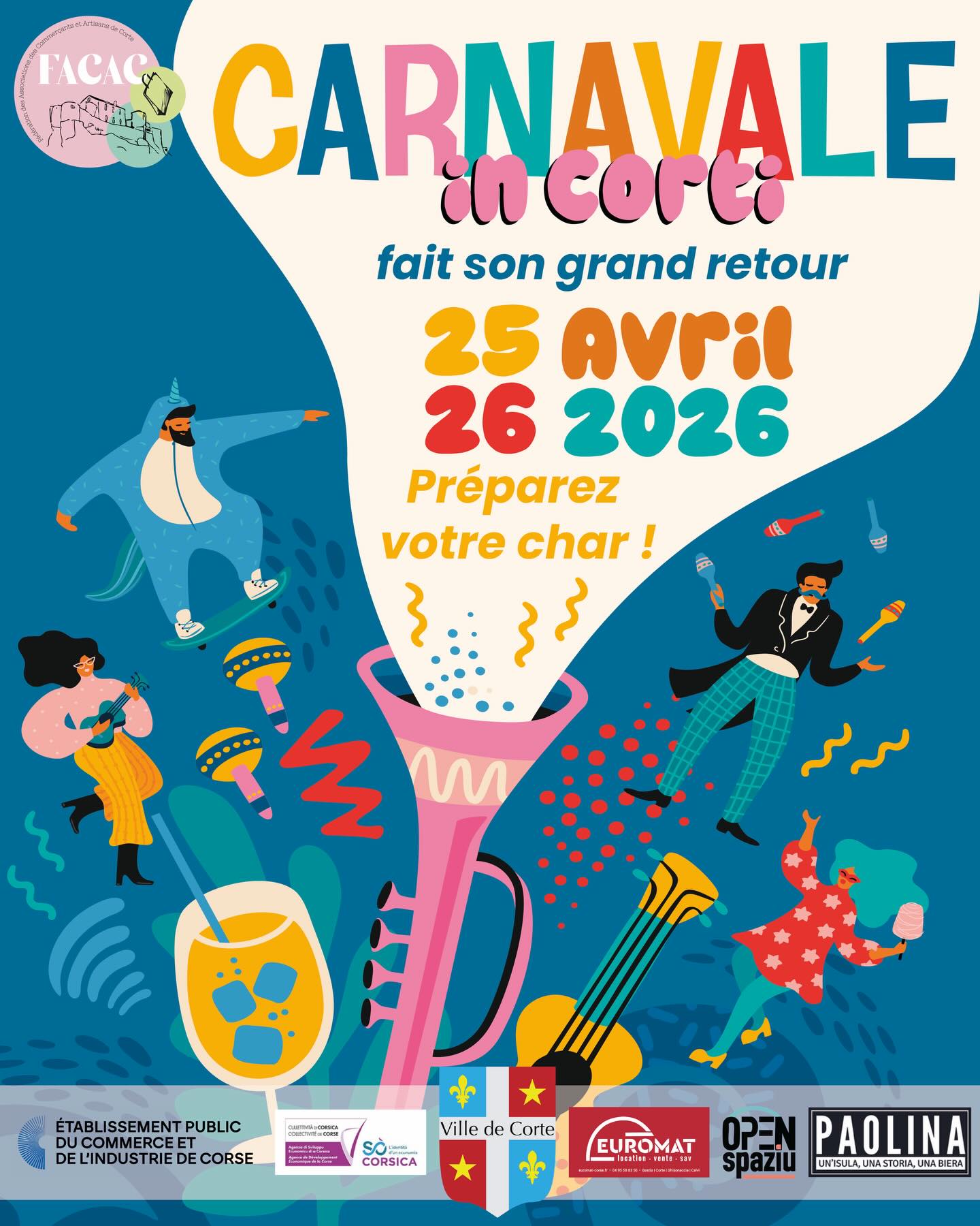 U Carnavale in Corti torna per una nuova edizione il 25 e 26 aprile. Venite a partecipare ai festeggiamenti con costumi sfolgoranti, sfilate colorate, un'atmosfera festosa, musica dal vivo, pupazzi giganti e carri magnificamente decorati! Programma : Sabato 26 aprile: corso paoli pièton. Domenica 27 aprile: corso paoli pièton . Grande sfilata sul Cours Paoli.
