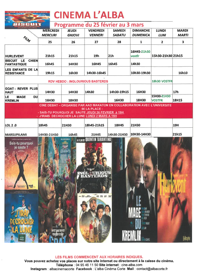 CINEMA L ALBA : PROGRAMME DU 25 FEVRIER AU 3 MARS 2026