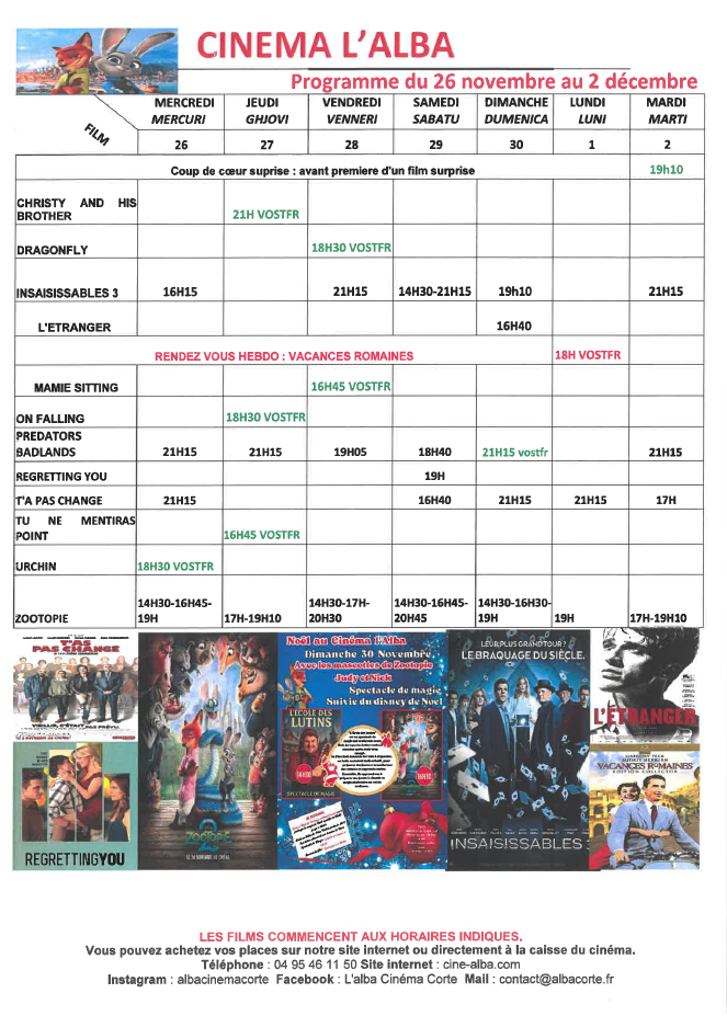 CINEMA L ALBA : PROGRAMME DU 26 NOVEMBRE AU 2 DECEMBRE 2025