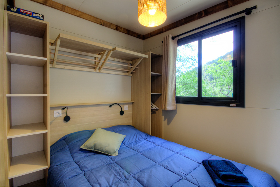 Chalet per 4/5 persone, composto da 2 camere con 2 letti matrimoniali (di cui uno con un lettino sopra) e da un soggiorno completamente vetrato che unisce luce e spazio. con un lettino sopra) e un soggiorno completamente vetrato che combina luce e spazio (l'accesso alla terrazza di 18 m² con vista sulla piscina riscaldata in comune). accesso alla terrazza di 18 m² che si affaccia su una piscina comune riscaldata. piscina comune riscaldata. Prenotazione minima di 2 notti.